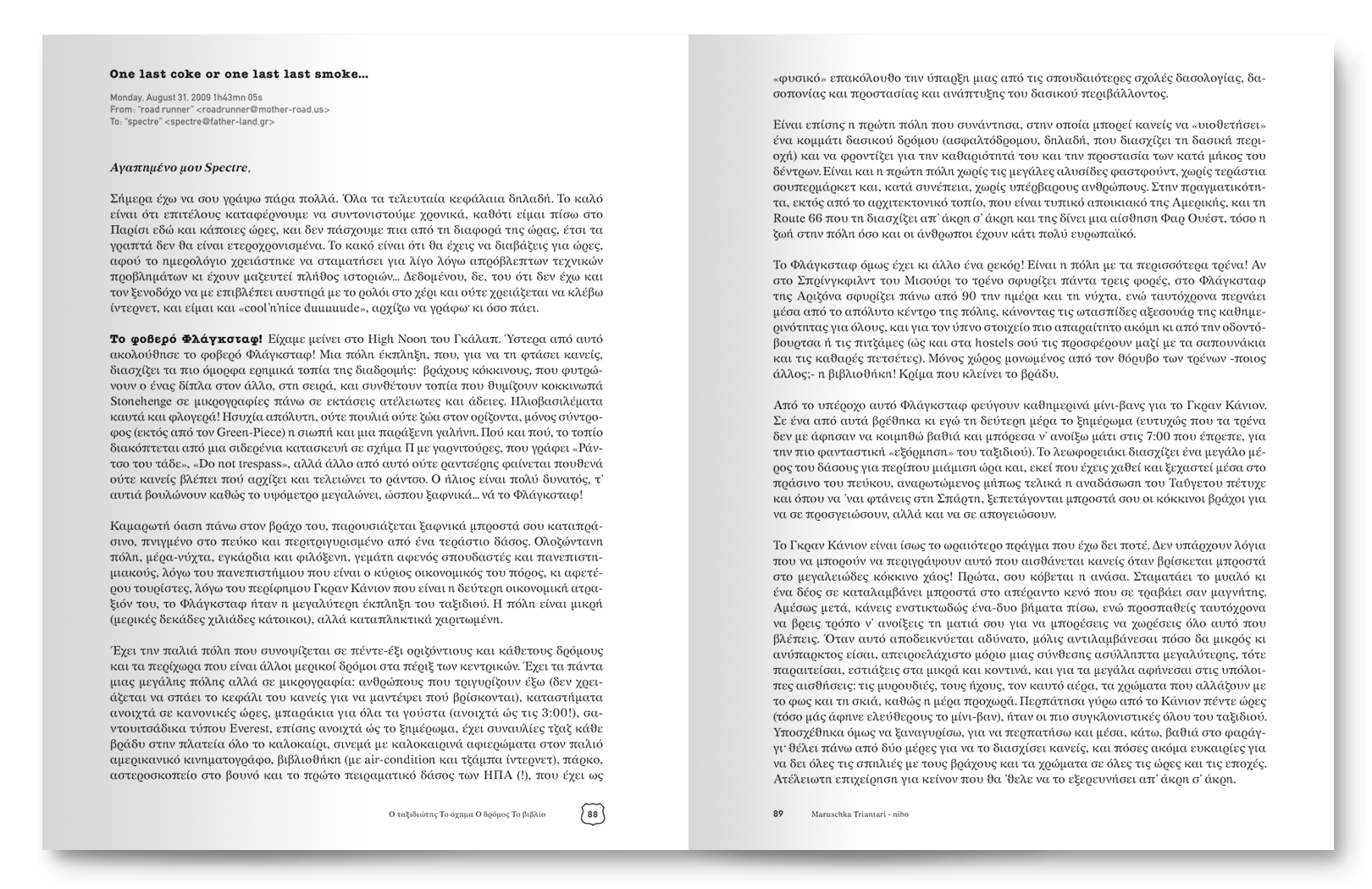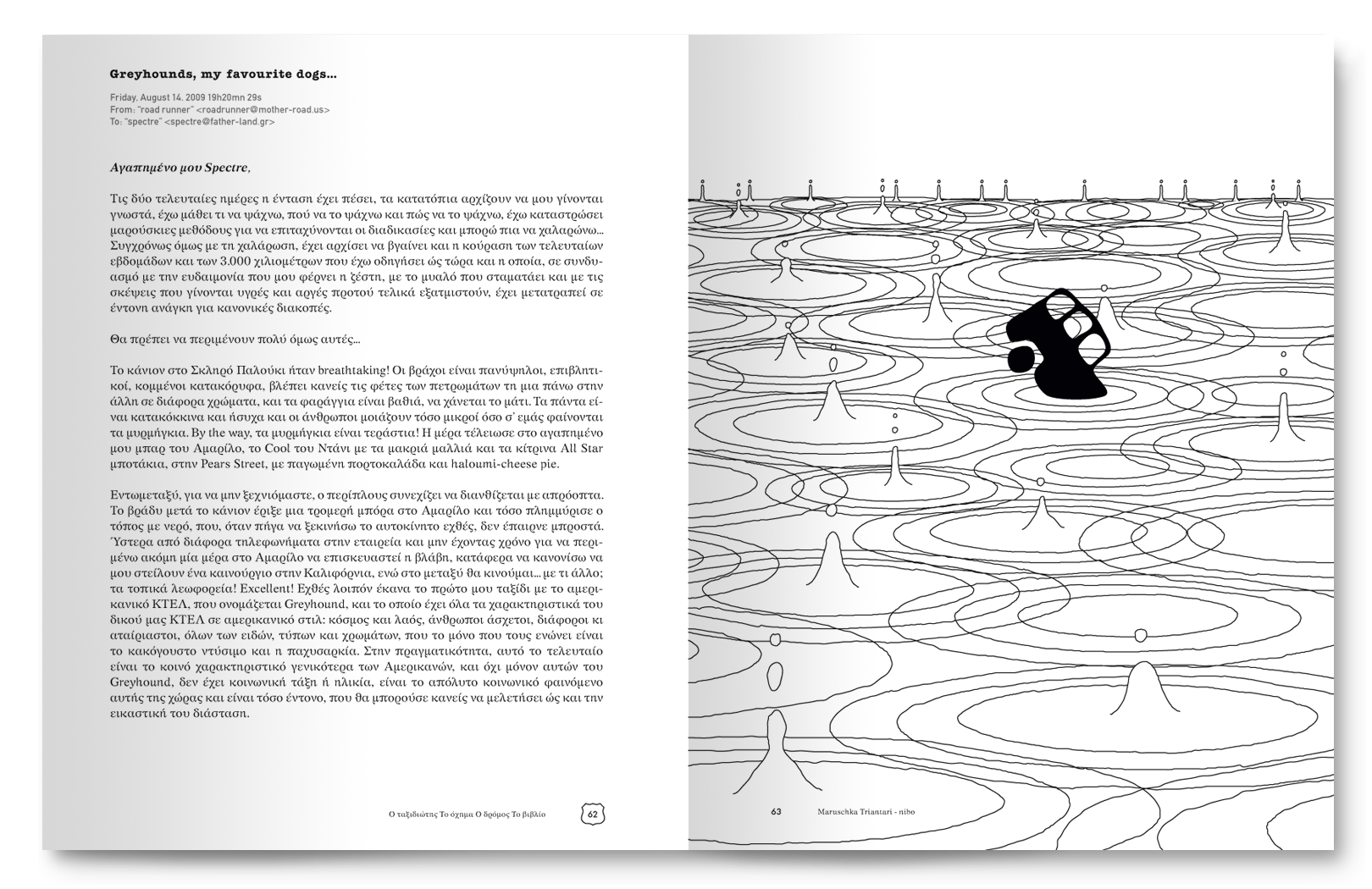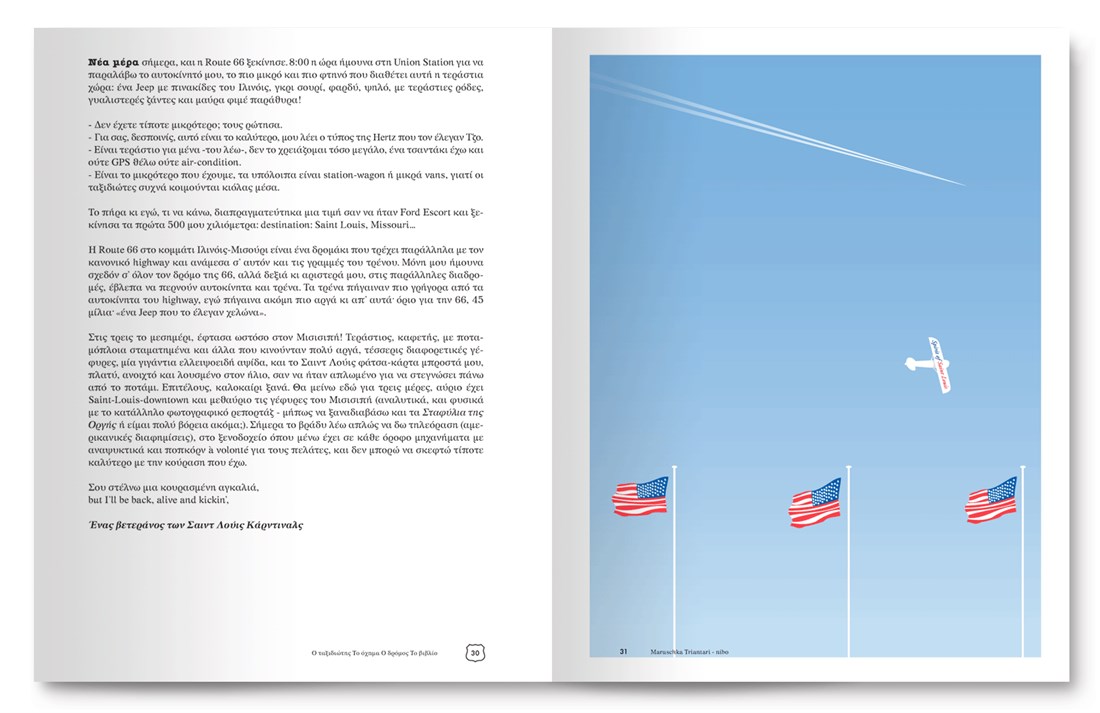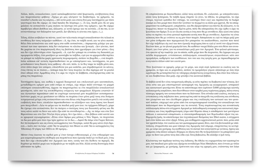 Great satisfaction gives us the fact that, by reading or flipping through this book, the reader does not comprehend the complexity of the layout, or the difficulty of incorporating so many different illustrations without creating a visual clatter, or an illegible optical mosaic. Instead, the reader is introduced to a world of mental stimulants, seemingly chaotic but eventually forming an indivisible body of emotions and memories which only a journey (and sometimes a book about a journey!) can offer.